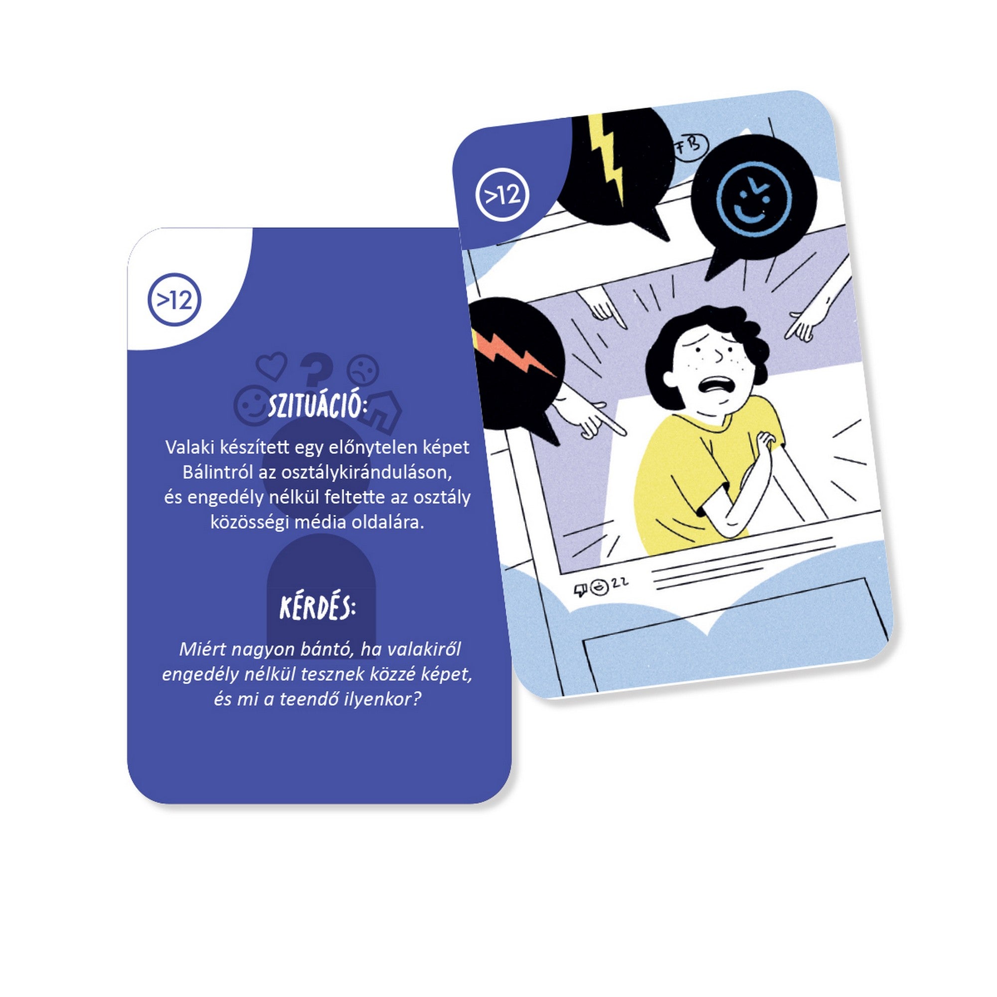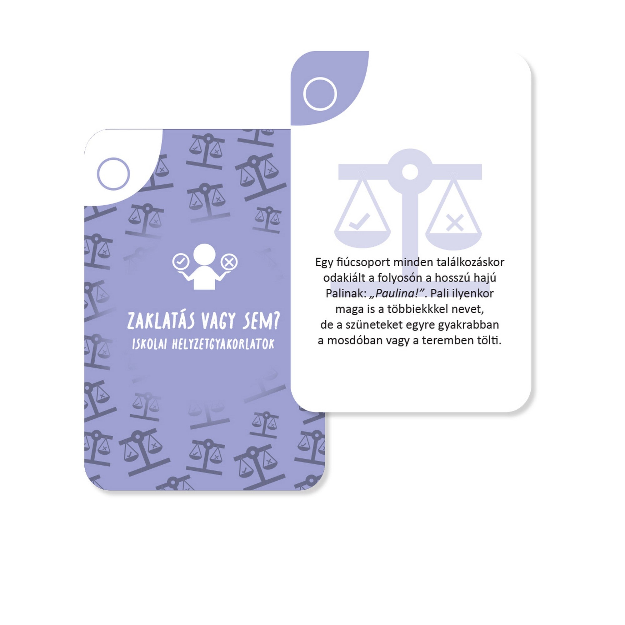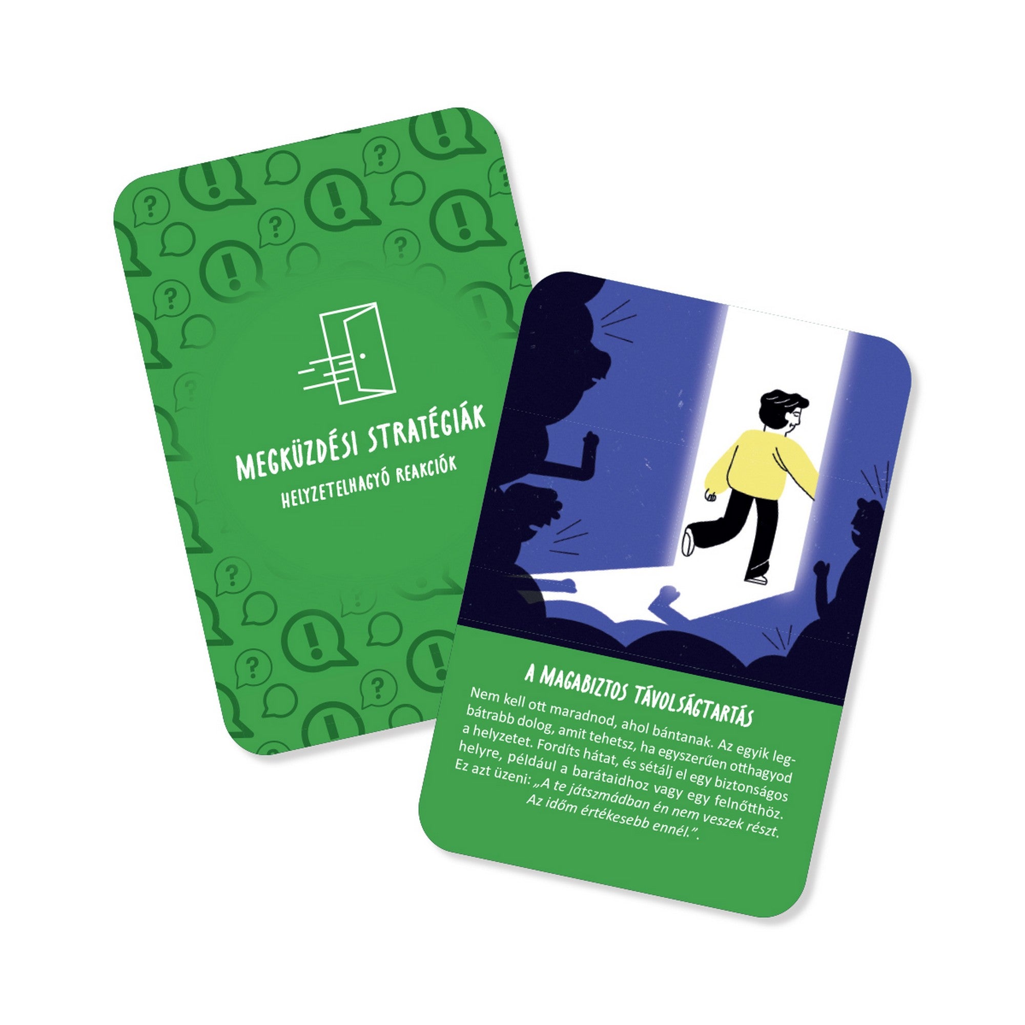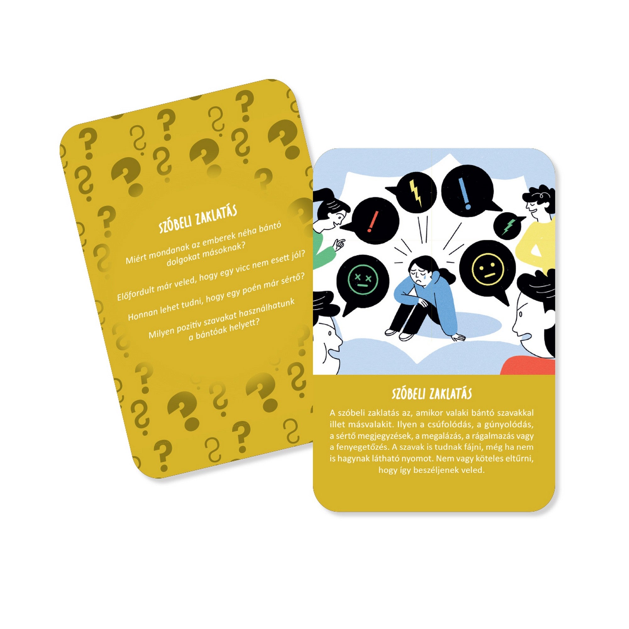Stop bántalmazás este un joc de cărți educativ care ajută la prevenirea și gestionarea bullyingului în mediul școlar. Jocul conține întrebări care deschid discuții și exerciții situaționale ce îi ajută pe copii și adolescenți să înțeleagă mai bine diferitele forme de agresiune și să învețe cum pot reacționa în astfel de situații.